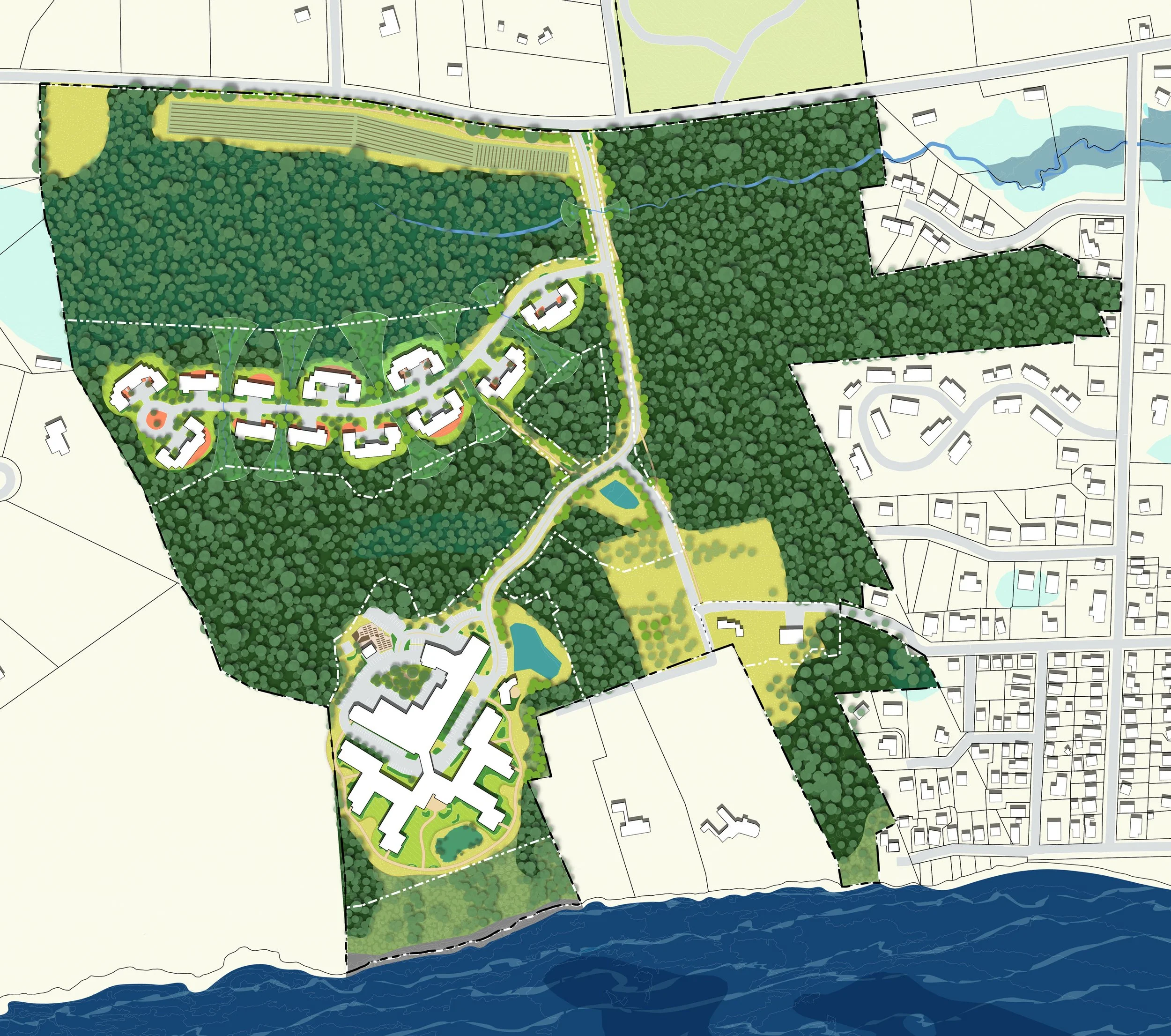 Piper Shores is a nonprofit senior living community located in Scarborough, Maine. The 138-acre campus includes a variety of landscapes ranging from manicured lawns and gardens to stormwater swales and a vast conservation easement that protects forests, wetlands and meadows. This mosaic of outdoor environments elevates the quality of life for residents by providing scenic quality and by leveraging the restorative quality of the natural environment.